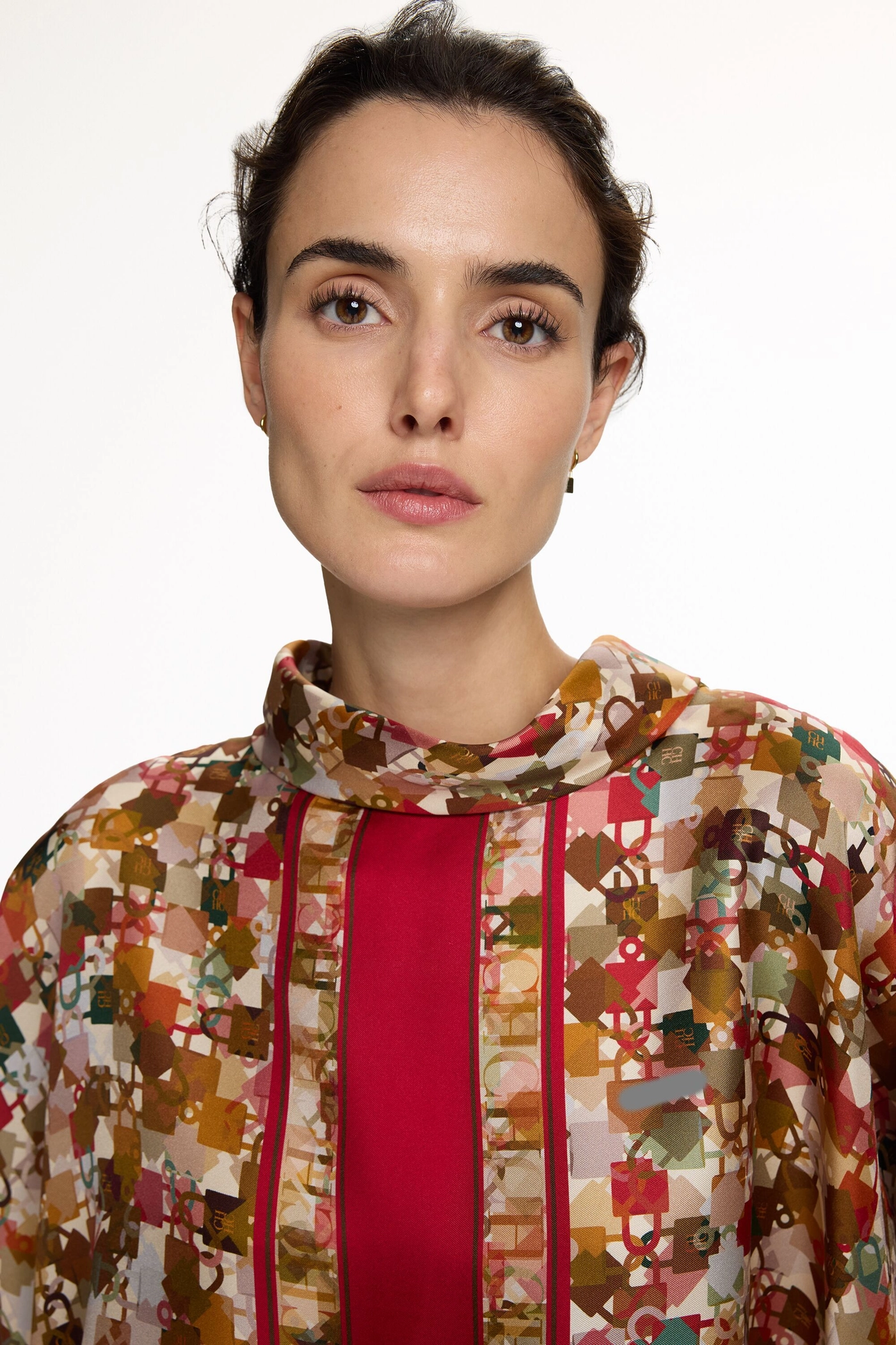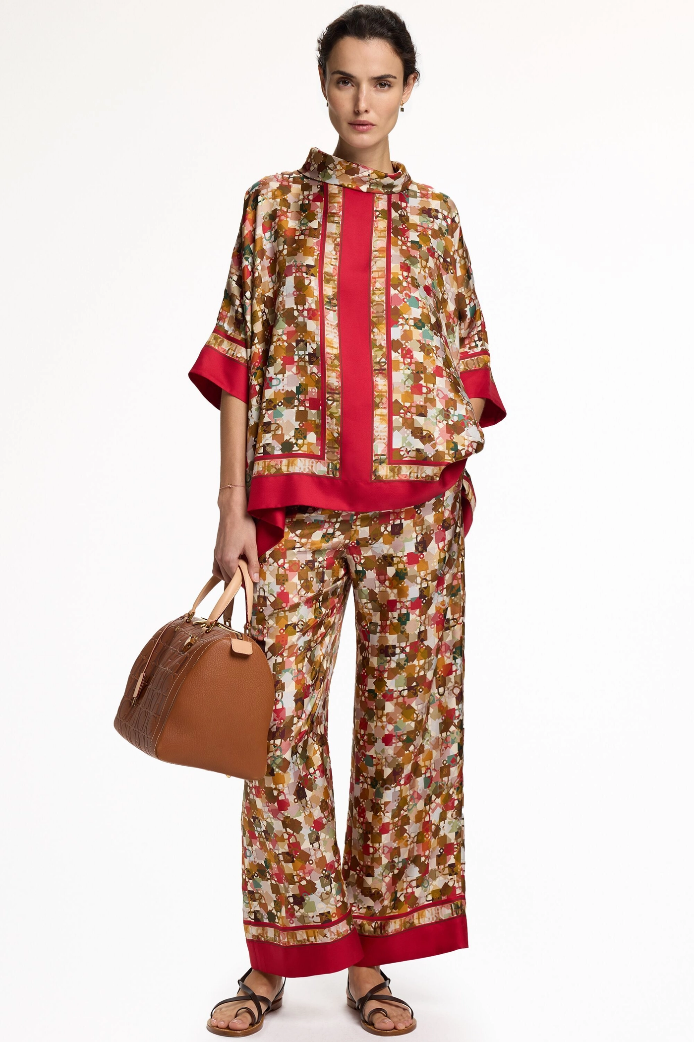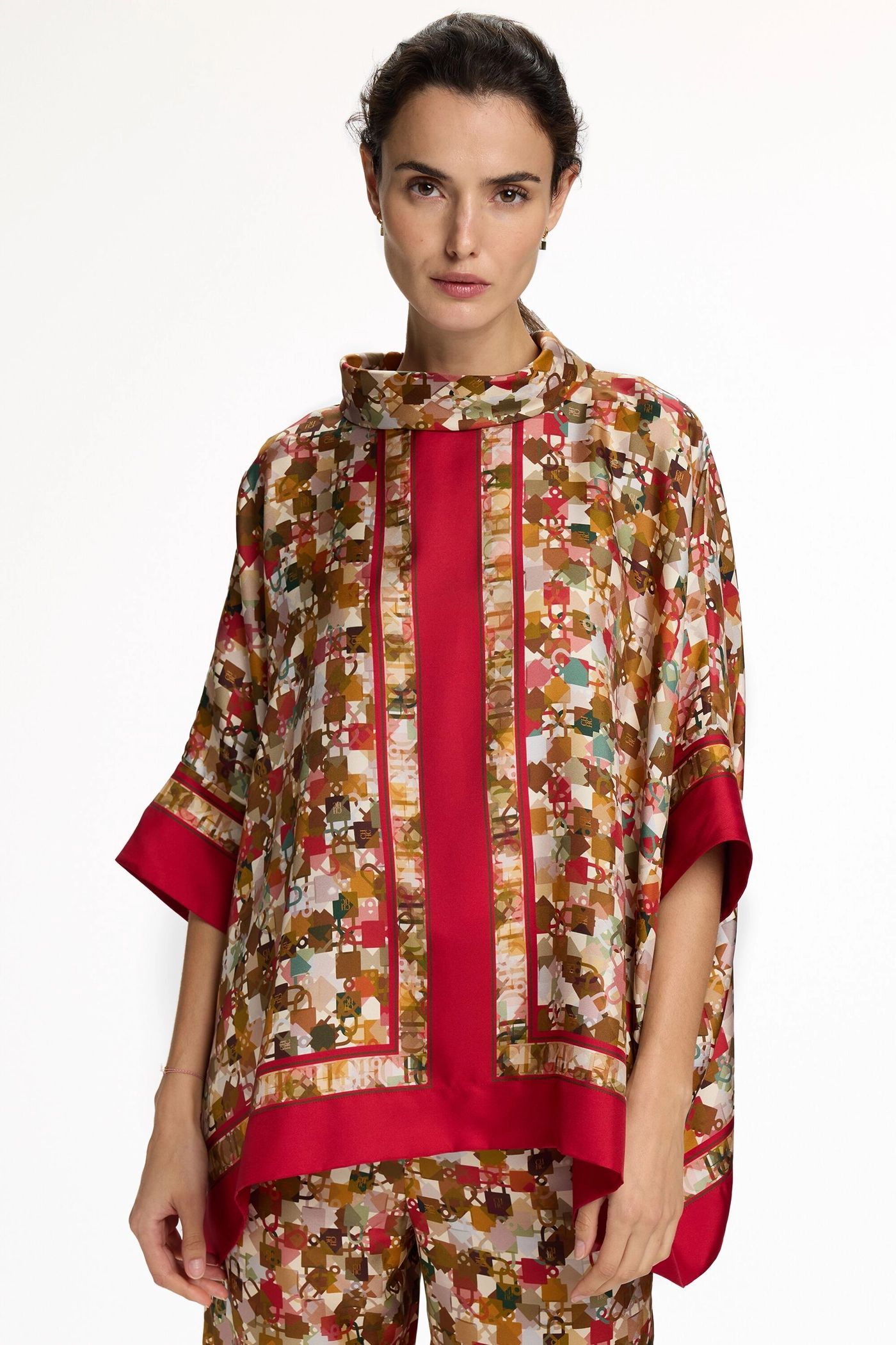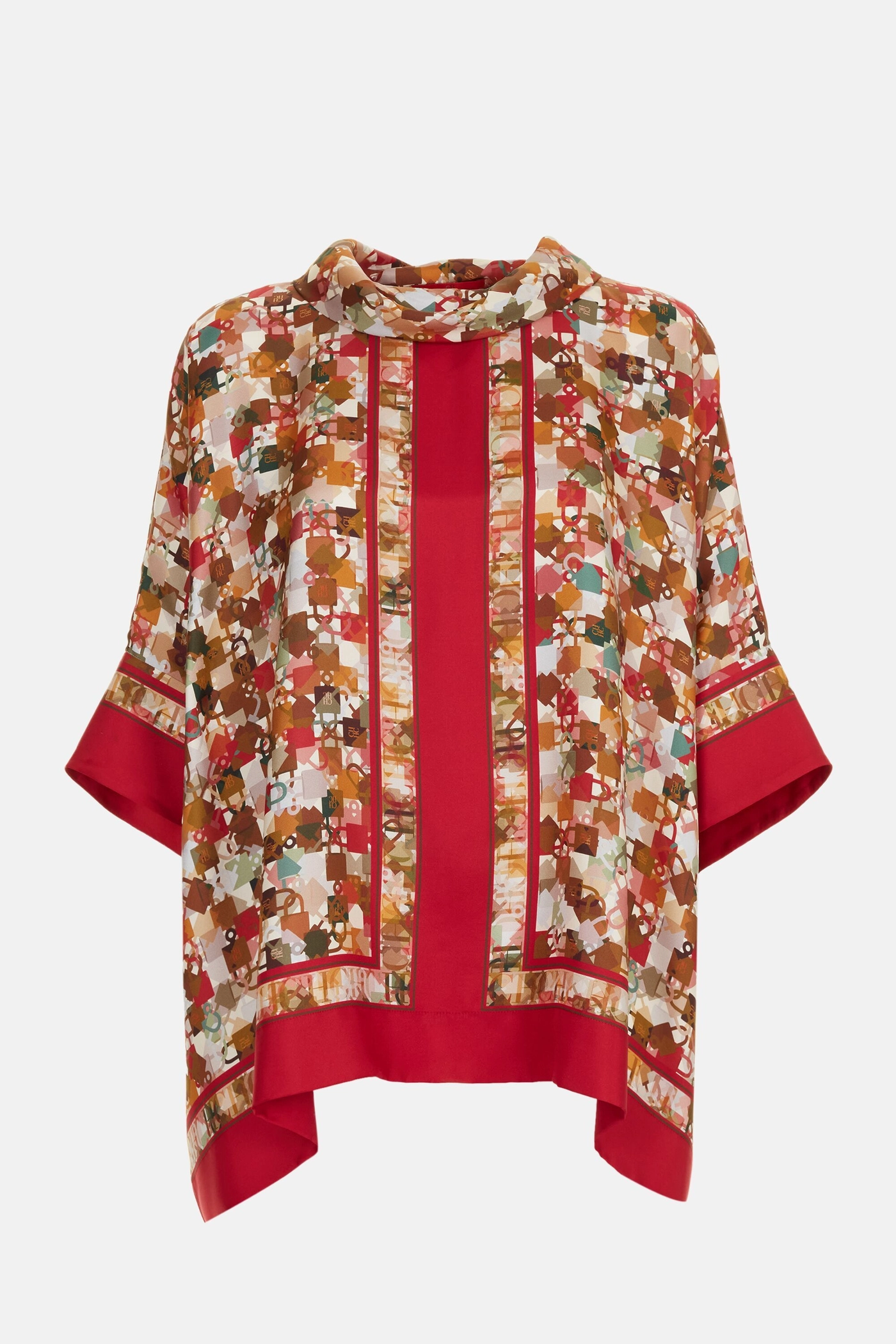 Locked Print Silk Twill Square Top